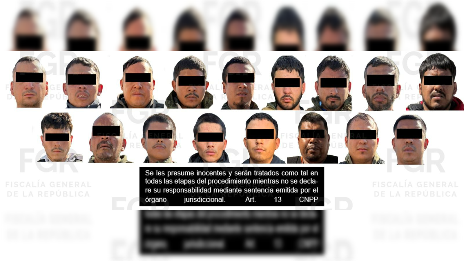 La Fiscalía General de la República (FGR) obtuvo vinculación a proceso en contra de 17 personas por su probable participación en los delitos de portación de armas de fuego largas y cortas, posesión de cartuchos y cargadores, así como posesión de artefactos explosivos.