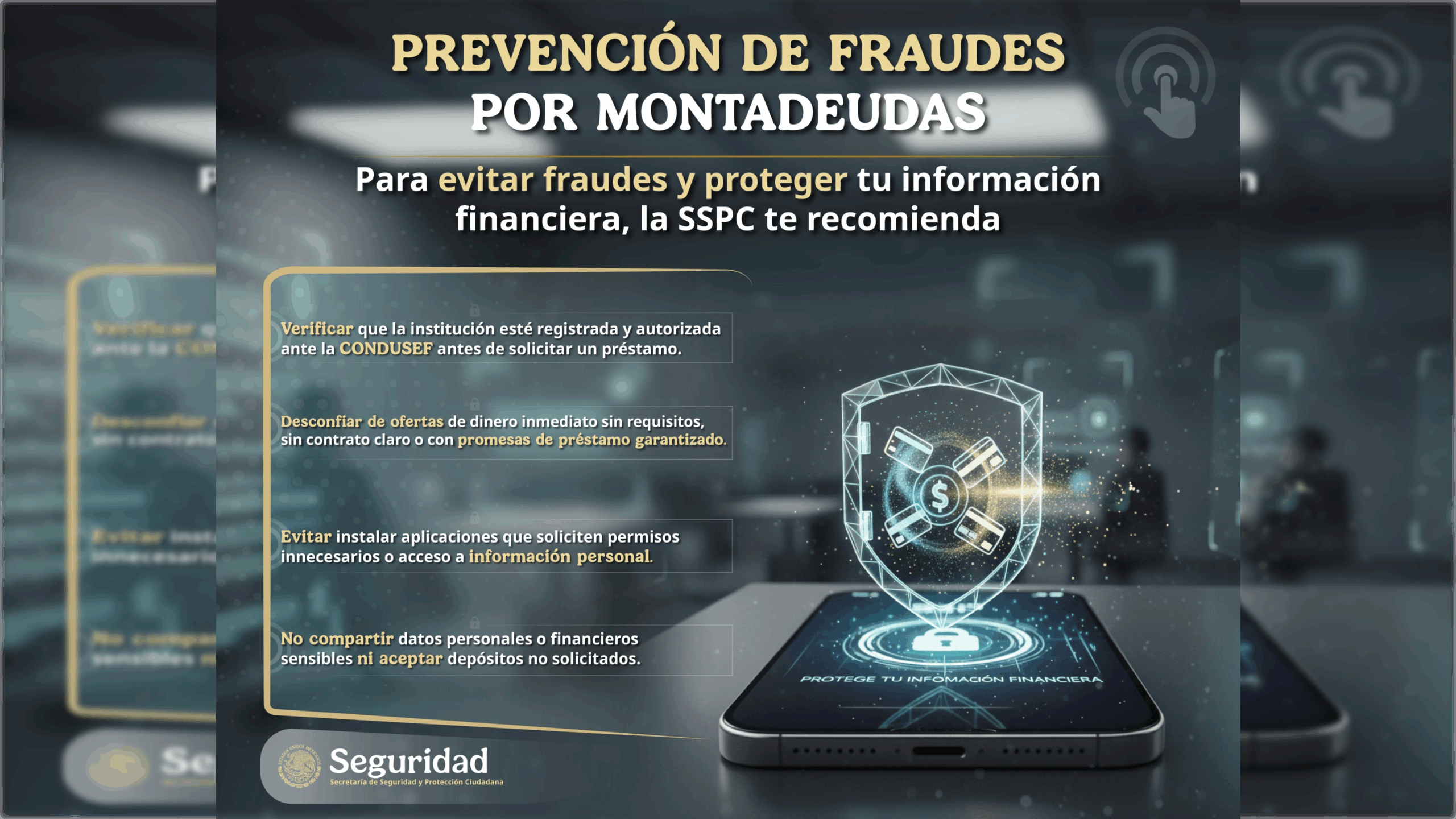 Ciudad de México. La Secretaría de Seguridad y Protección Ciudadana (SSPC), a través de la Unidad de Inteligencia, Investigación Cibernética y Operaciones Tecnológicas, emite recomendaciones a la ciudadanía para prevenir fraudes conocidos como montadeudas, durante el mes de enero, periodo caracterizado por una mayor presión económica derivada de gastos acumulados, pagos pendientes y menor liquidez.